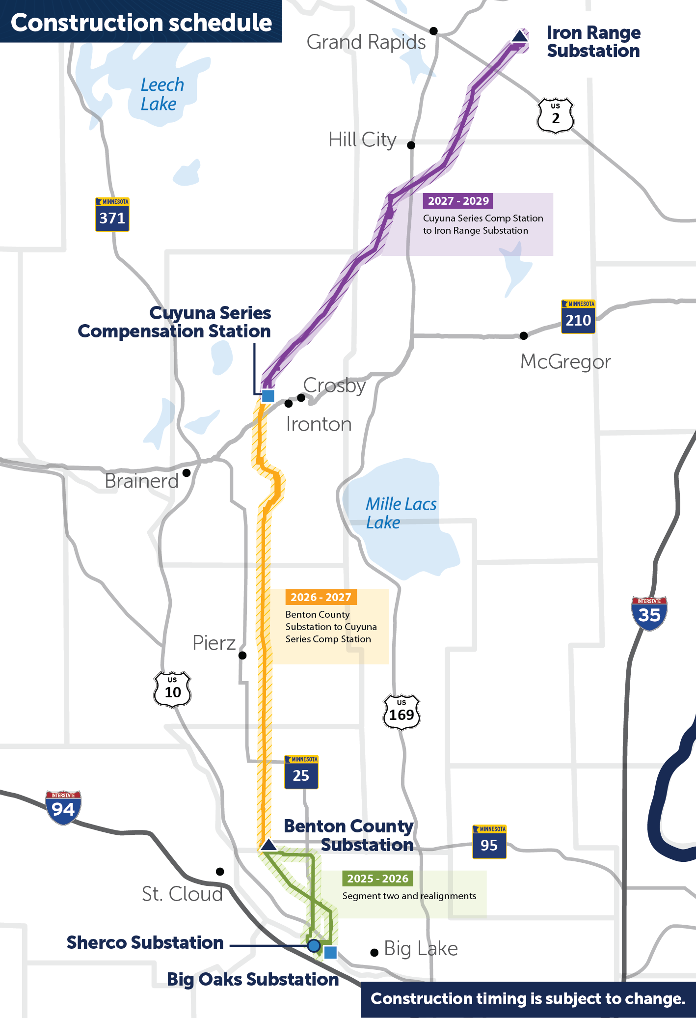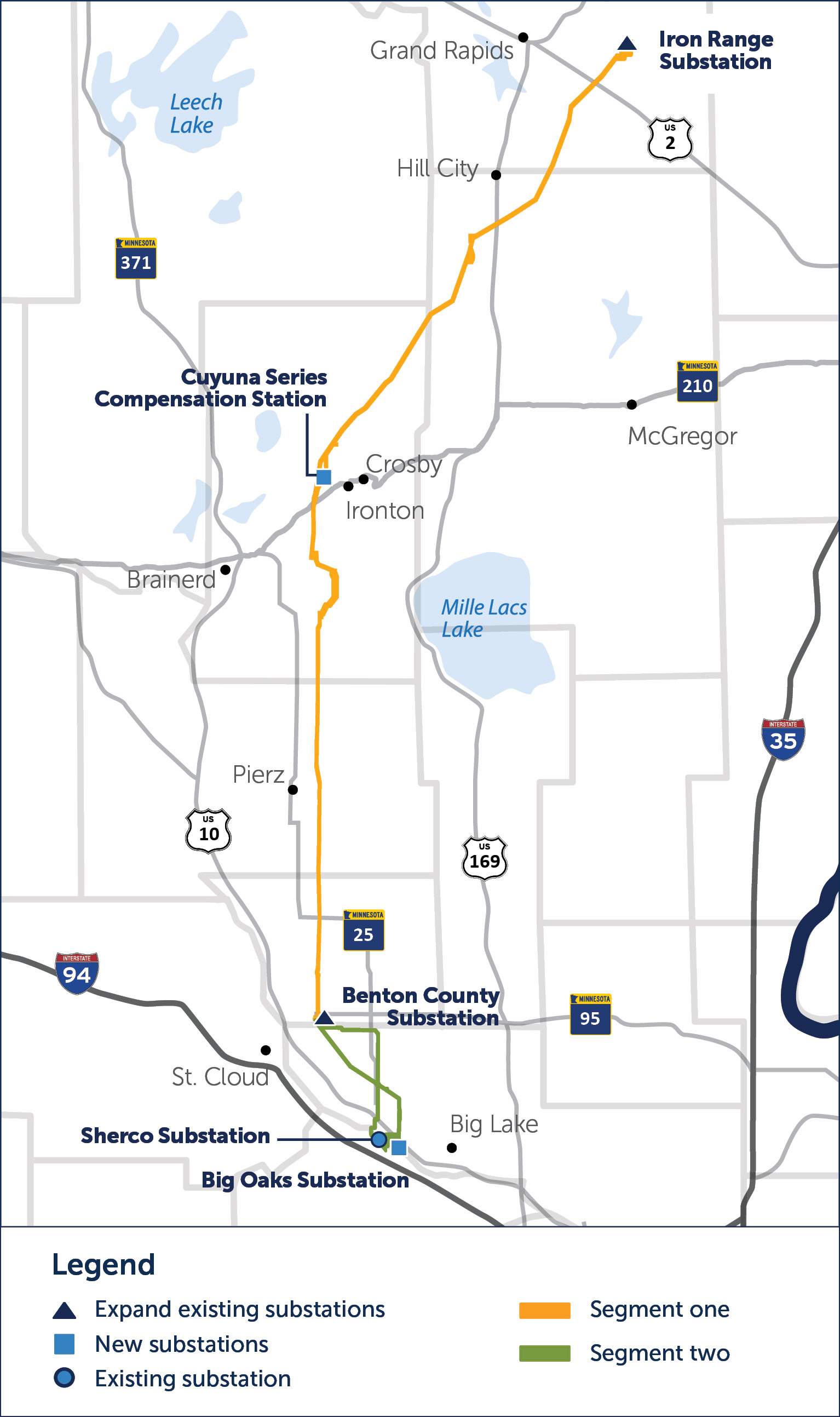 - Expand the existing Iron Range Substation near Grand Rapids and the Benton County Substation near St. Cloud.